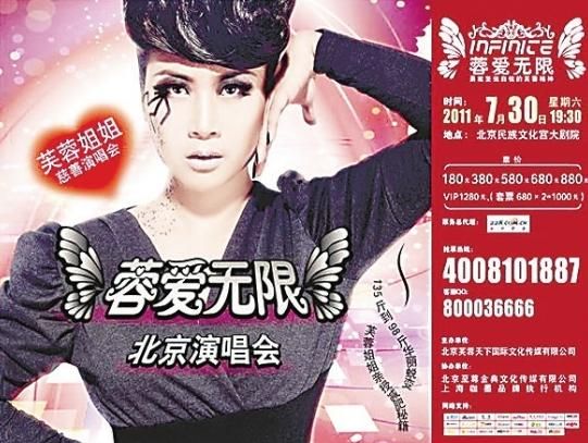芙蓉姐姐个唱敢跟王菲叫板 门票高达1280元